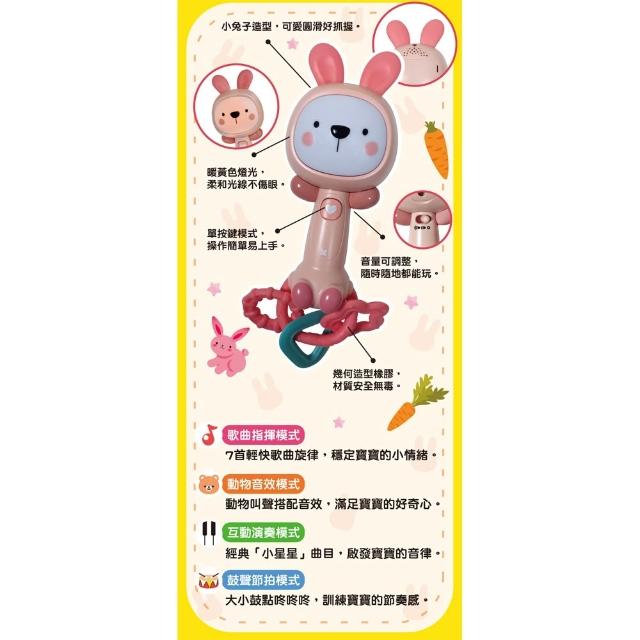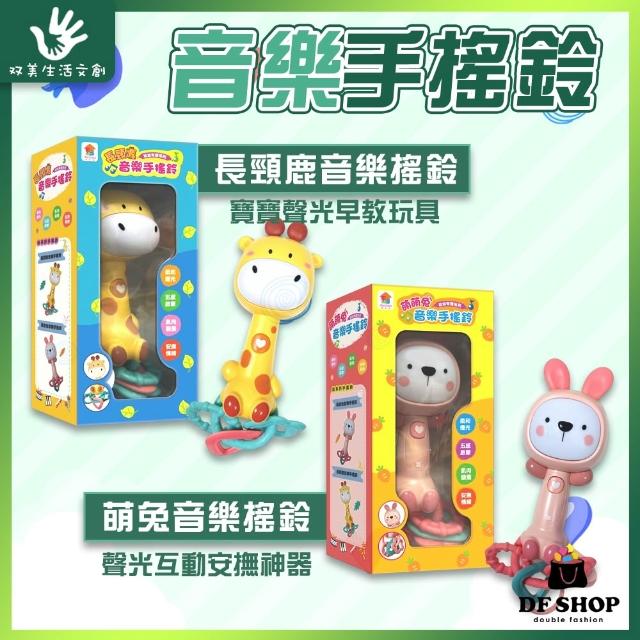 双美生活文創 - 萌萌兔 長頸鹿 音樂手搖鈴|6M+|柔和燈光X趣味音效X肌肉訓練X益智早教|安撫夜燈玩具 音樂搖鈴聲光