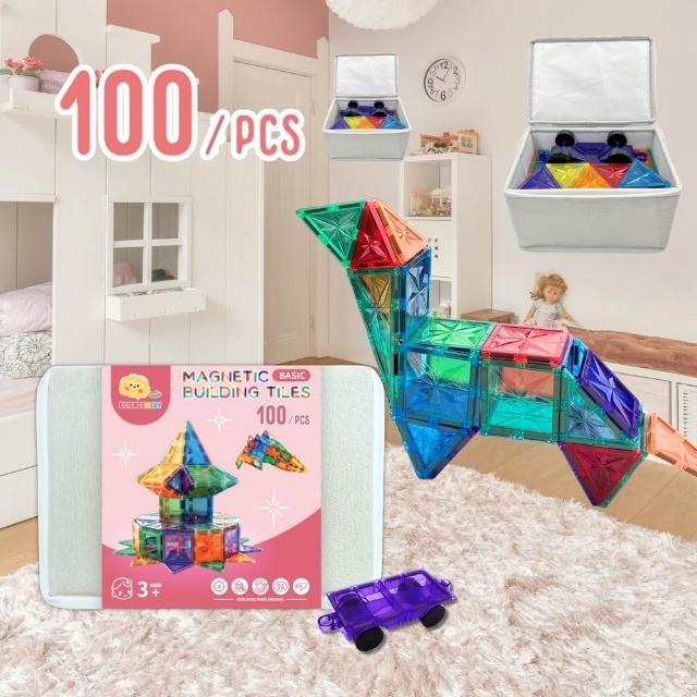 ScienceBaby雪鑽磁力片100片|2歲+|附贈獨家棉麻硬收納盒|磁力片 磁性積木 建構片 幼兒積木 安全玩具