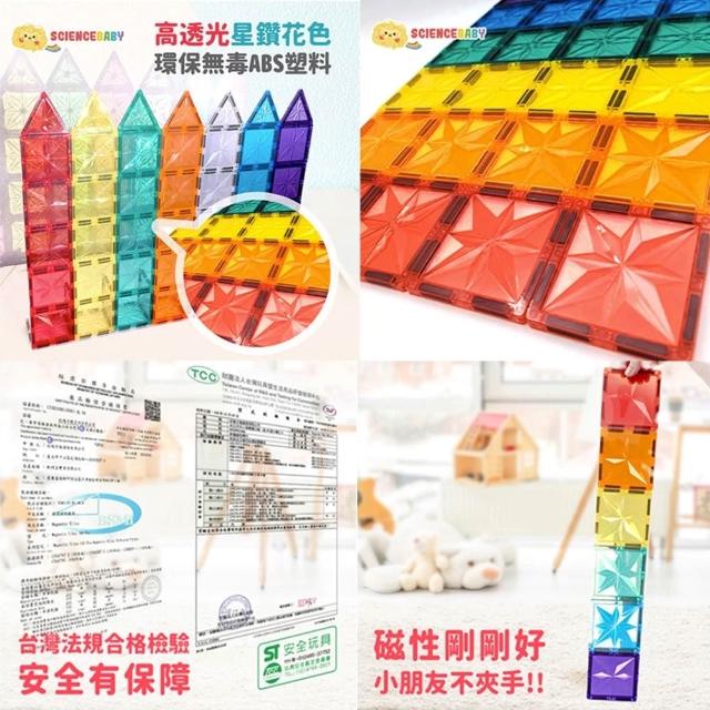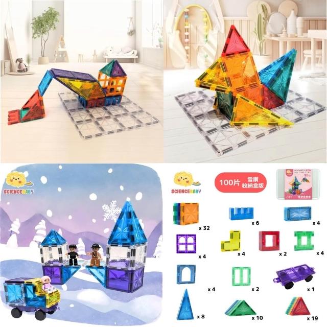ScienceBaby雪鑽磁力片100片|2歲+|附贈獨家棉麻硬收納盒|磁力片 磁性積木 建構片 幼兒積木 安全玩具