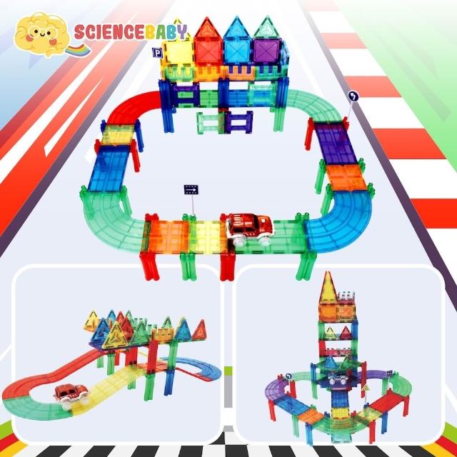 ScienceBaby雪鑽磁力片|電動軌道車112片|3歲+|車車玩具 磁力片玩具 科學積木 教育積木 磁吸軌道 磁力片 軌道車組 益智積木