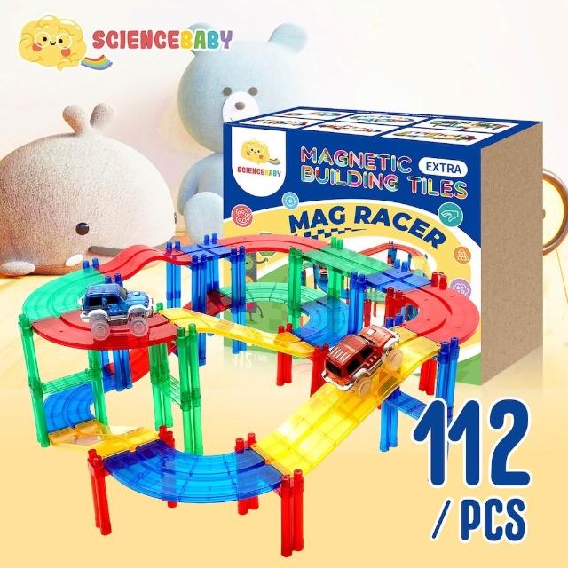 ScienceBaby雪鑽磁力片|電動軌道車112片|3歲+|車車玩具 磁力片玩具 科學積木 教育積木 磁吸軌道 磁力片 軌道車組 益智積木