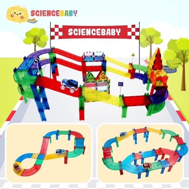 ScienceBaby雪鑽磁力片|電動軌道車112片|3歲+|車車玩具 磁力片玩具 科學積木 教育積木 磁吸軌道 磁力片 軌道車組 益智積木