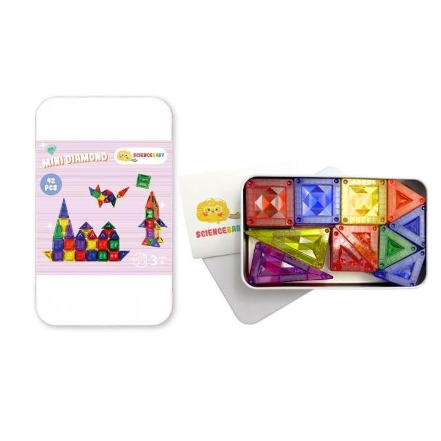 ScienceBaby雪鑽磁力片|鑽石小磁片42片|附收納小鐵盒|2歲+|磁力積木 拼裝積木 兒童積木 小磁片 磁力片 磁吸積木 創意積木