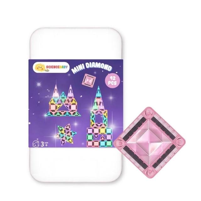 ScienceBaby雪鑽磁力片|鑽石小磁片42片|附收納小鐵盒|2歲+|磁力積木 拼裝積木 兒童積木 小磁片 磁力片 磁吸積木 創意積木