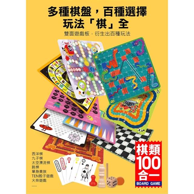 風車圖書FUNDO樂多 棋類100合1|6歲+|桌遊組合|經典棋類|西洋棋 跳棋 五子棋 撲克牌 多人桌遊 益智遊戲 木製棋子