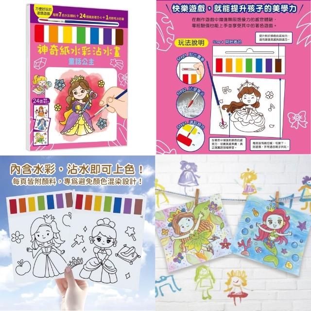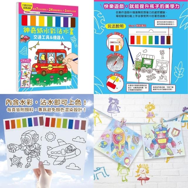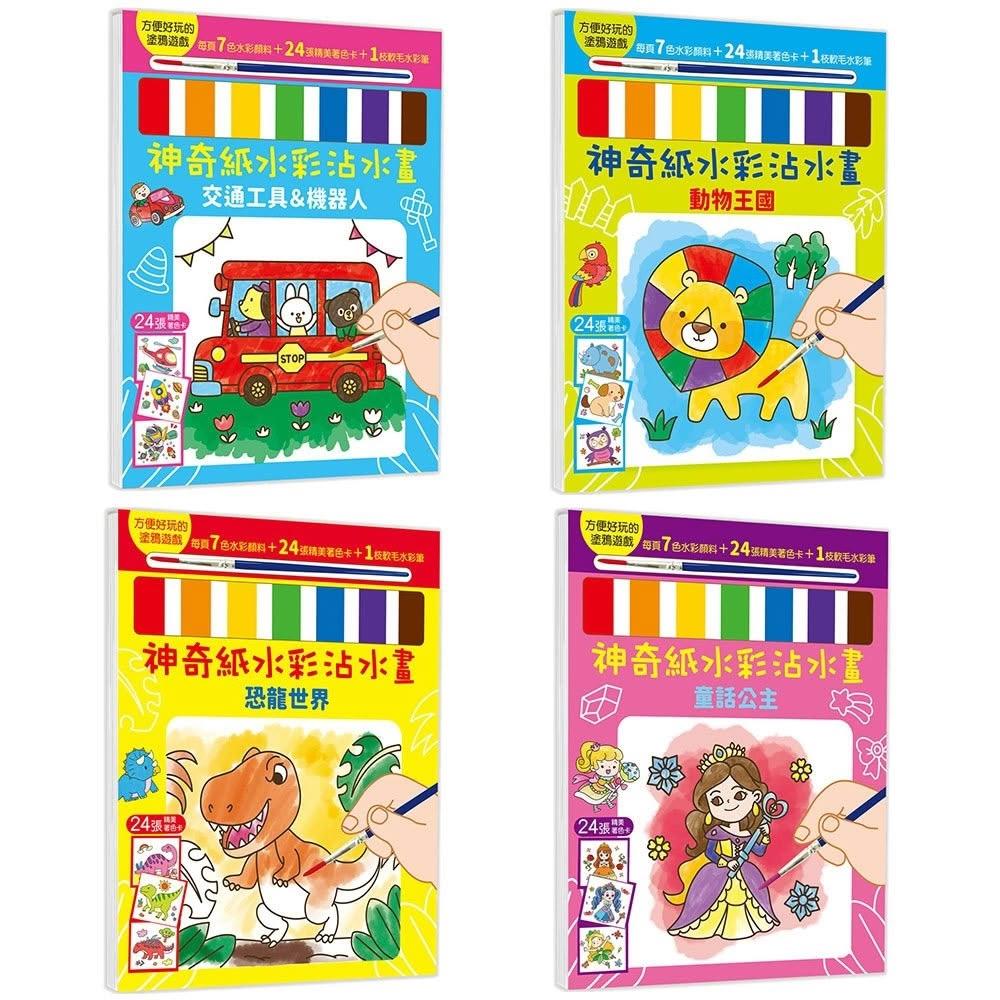 幼福神奇紙水彩沾水畫|4歲+|童話公主 恐龍世界 動物王國 交通工具&機器人|兒童水彩書 沾水即可上色 水彩書