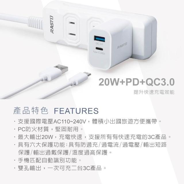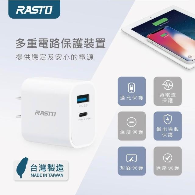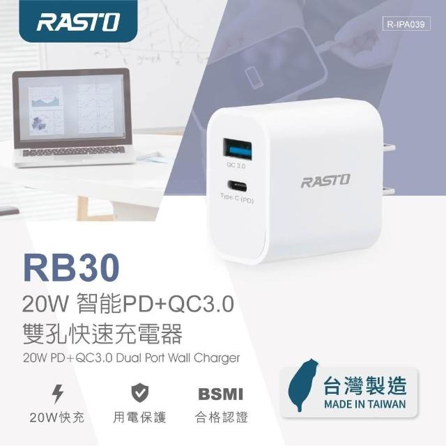 RASTORASTO RB30 20W 智能PD QC3.0雙孔快速充電器 六大安全保護 自動識別裝置匹配