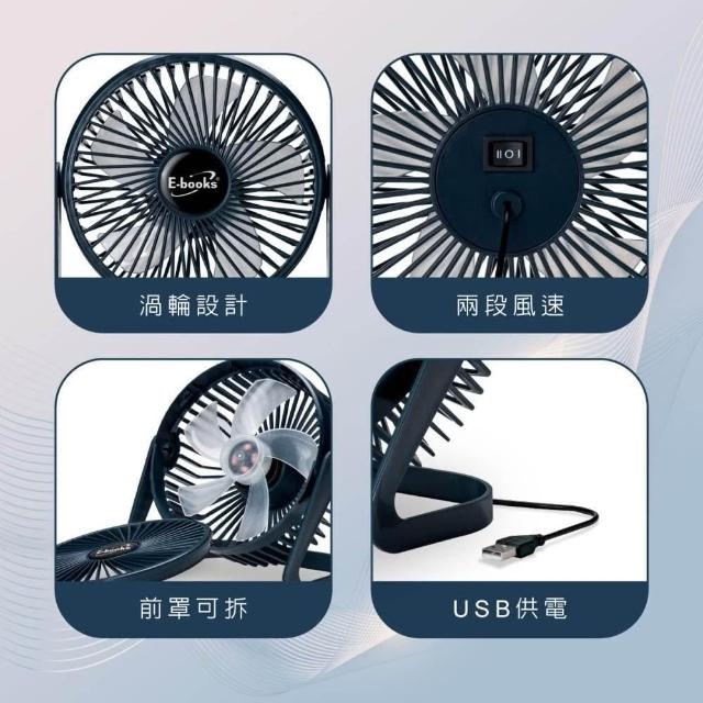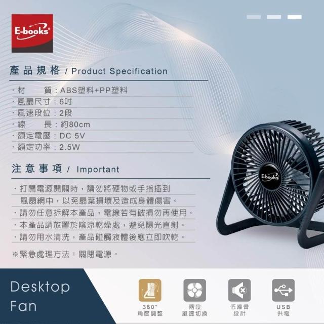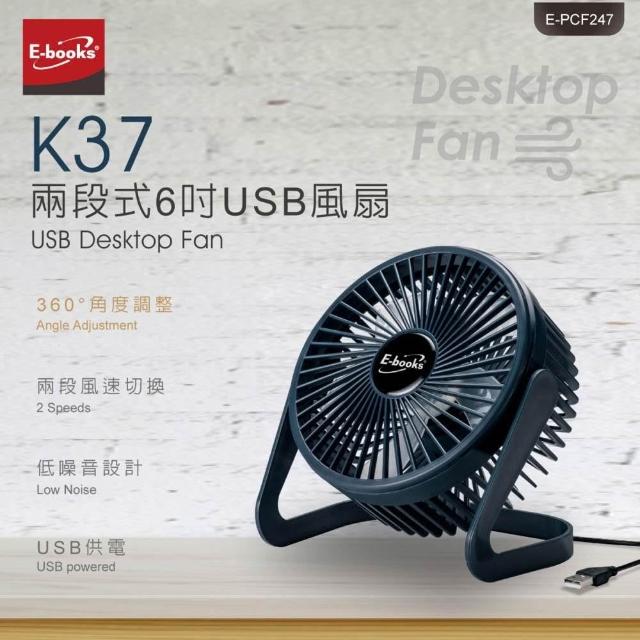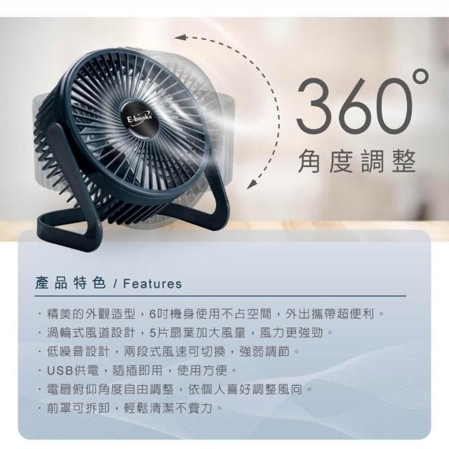 E-booksE-BOOKS K37 兩段式6吋USB風扇 渦輪強風 靜音設計 可調角度 可拆清潔 隨插即用