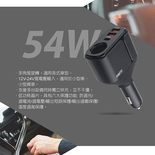 RASTORASTO RB13 車用擴充54W快充 PD雙QC3.0快速充電器 可旋轉角度 六重保護 多設備快充