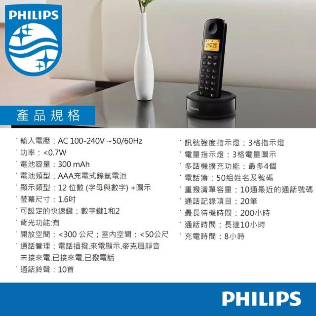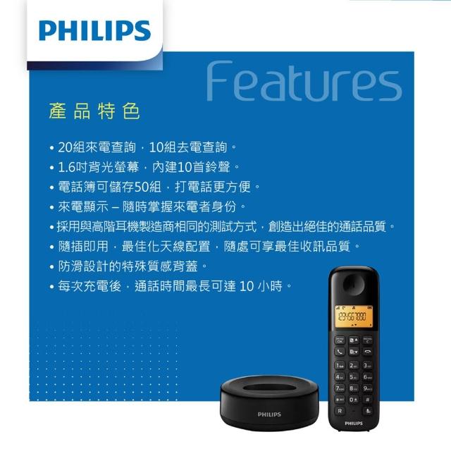 Philips 飛利浦PHILIPS D1601B數位無線電話 長效待機 清晰通話品質