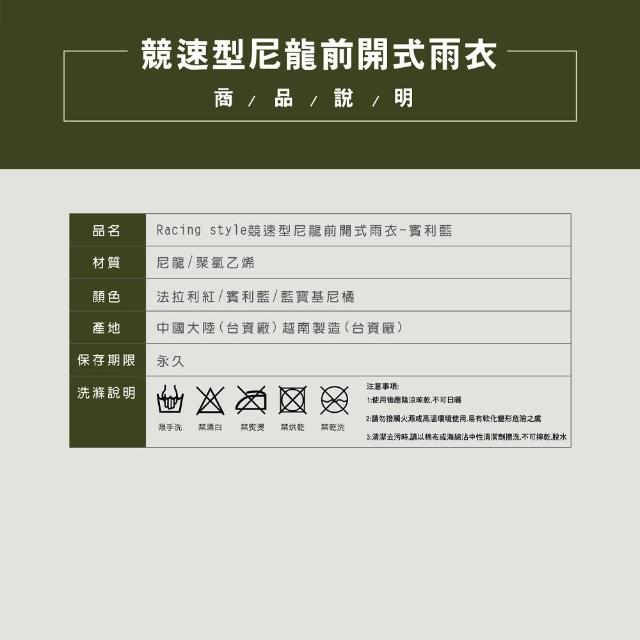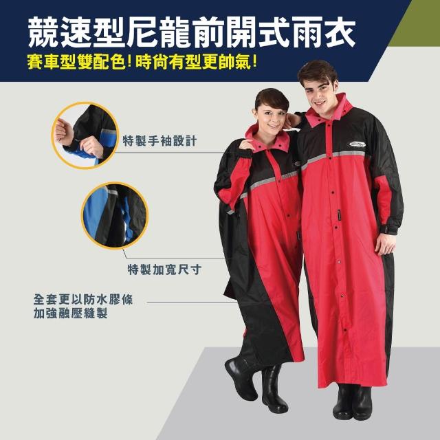 天龍牌天龍牌 競速型尼龍前開式雨衣 防水袖口設計 夜間高亮反光條 紅色/藍色 2XL/3XL/4XL