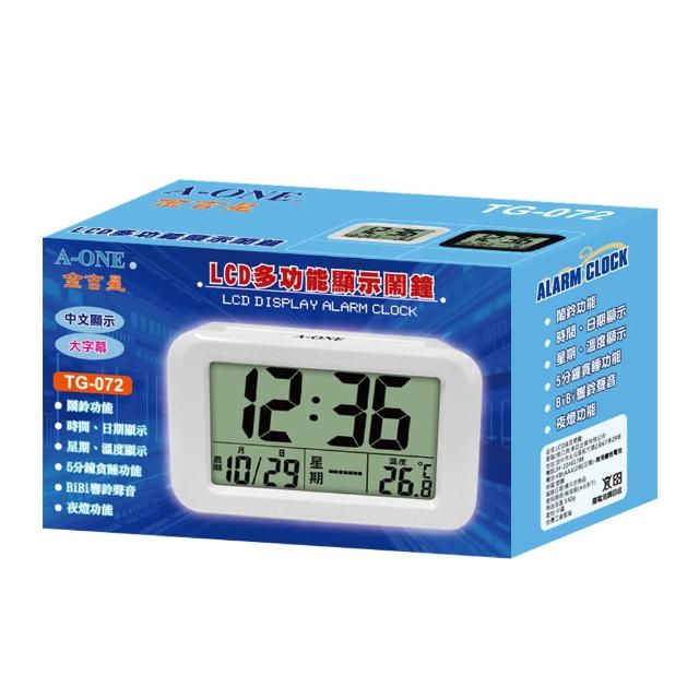 A-ONEA-ONE TG-072 多功能藍光LCD鬧鐘 超大螢幕 貪睡功能 時間溫度顯示