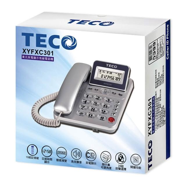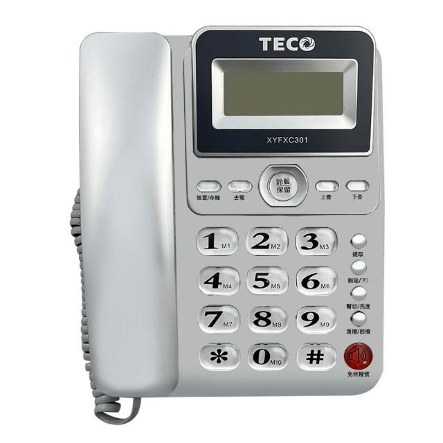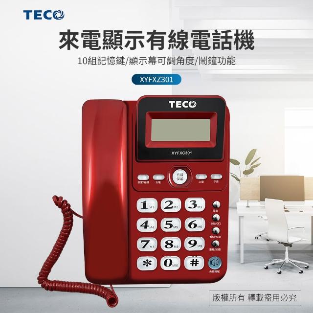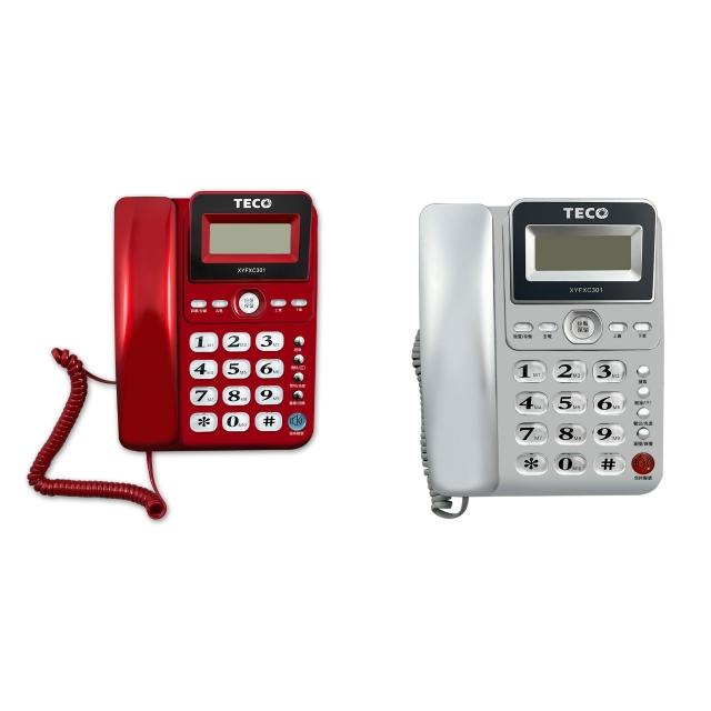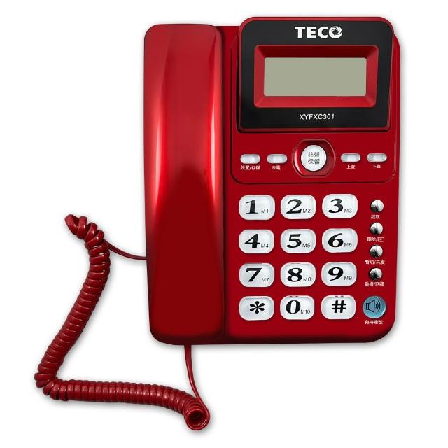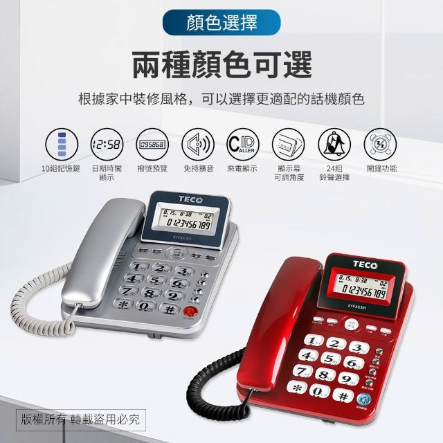 TECO 東元東元 XYFXC301 來電顯示有線電話 10組記憶鍵 免持擴音 鬧鐘功能(紅/銀)