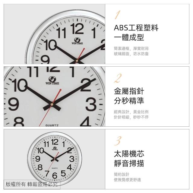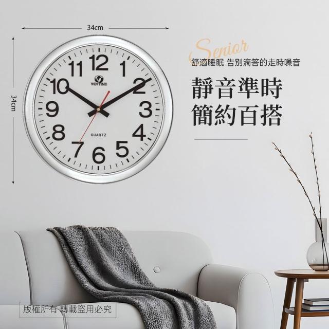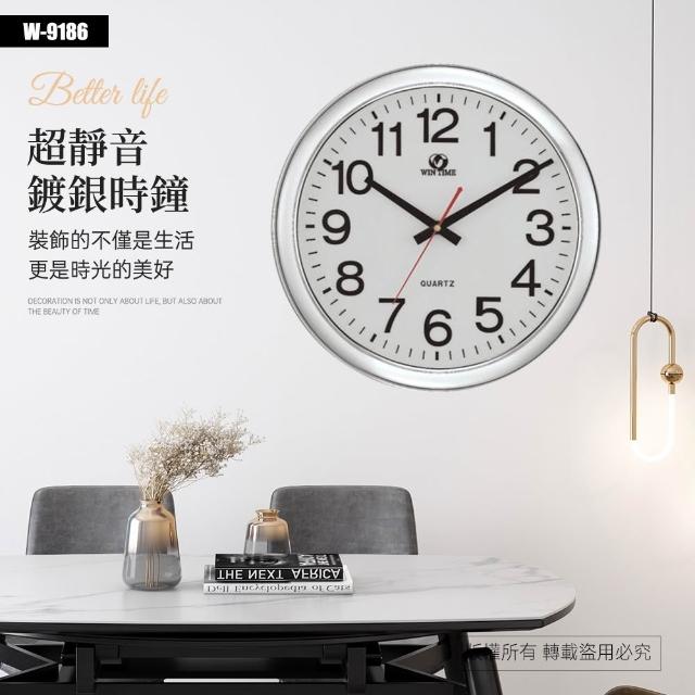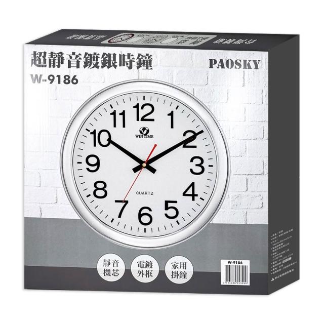PAOSKY W-9186 超靜音鍍銀掛鐘 34.5cm大尺寸 時鐘 牆面裝飾 連續繞秒 靜音機芯 客廳臥室適用