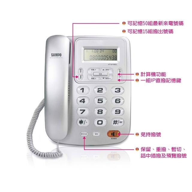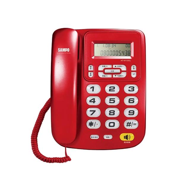 SAMPO 聲寶聲寶 HT-W1002L 來電顯示話機 免持撥號 50組來電記憶 計算機功能 家用電話 有線電話機(紅/銀色)
