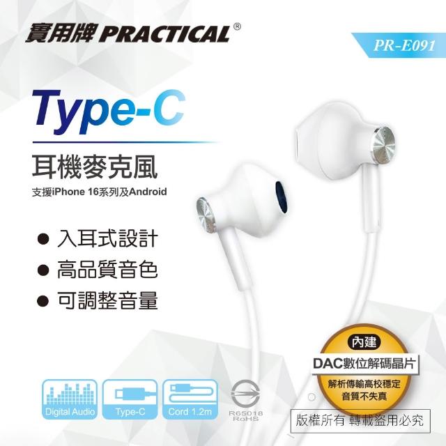 實用牌 PR-E091 Type-C 半入式有線耳機 內建DAC數位解碼晶片
