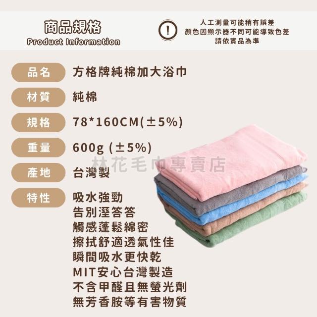 方格牌台灣製純棉加大浴巾(大條浴巾 厚浴巾 純棉浴巾 吸水浴巾 台灣製浴巾 大浴巾 飯店浴巾)