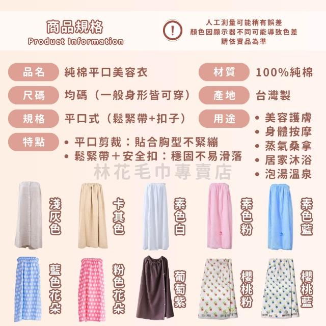 林花毛巾台灣製素色SPA純棉美容衣(浴裙 浴巾斗篷 美容浴裙 浴裙台灣製 居家飯店桑拿都適合 浴衣)