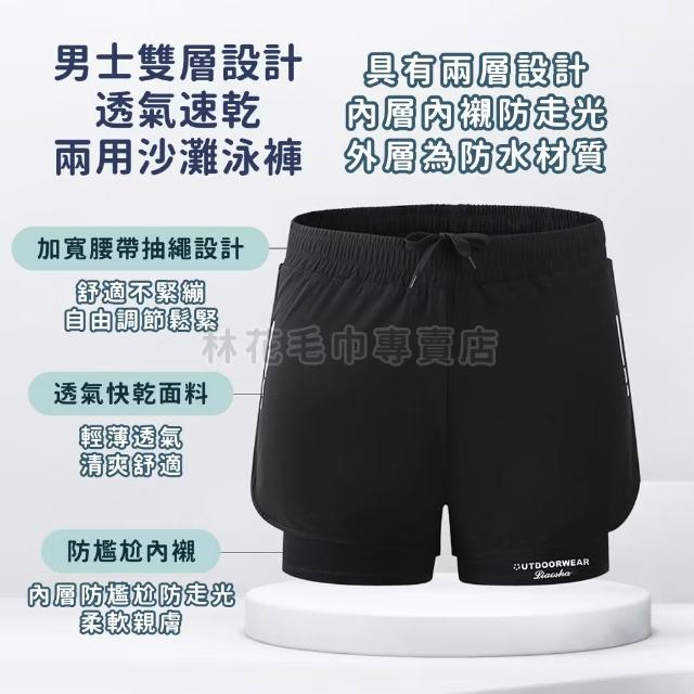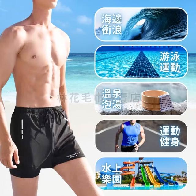 林花毛巾男生泳褲 雙層內襯 加大尺碼 (速乾平角泳褲 溫泉泳衣 沙灘褲 海灘褲 男生游泳褲 運動泳裝 防走光泳褲)