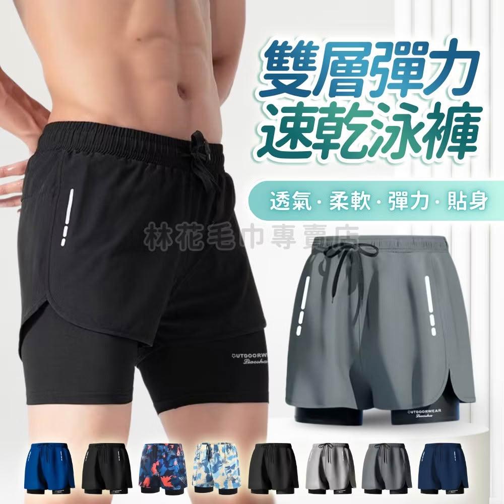 林花毛巾男生泳褲 雙層內襯 加大尺碼 (速乾平角泳褲 溫泉泳衣 沙灘褲 海灘褲 男生游泳褲 運動泳裝 防走光泳褲)