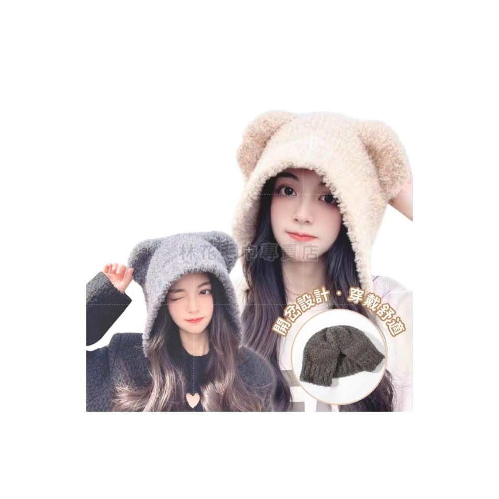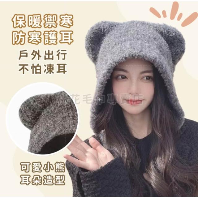 林花毛巾針織護耳毛帽(毛絨帽 遮耳毛帽 耳朵毛帽 毛帽 毛線帽 毛帽女 毛毛帽 可愛毛帽 毛帽耳朵 造型毛帽)