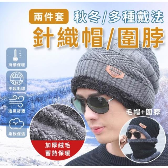 林花毛巾保暖加厚圍脖毛帽二件套組 (加厚保暖帽 男女可戴 保暖頭套 針織毛線帽 脖圍頸套 毛絨帽 毛線帽女生帽子 絨毛帽)