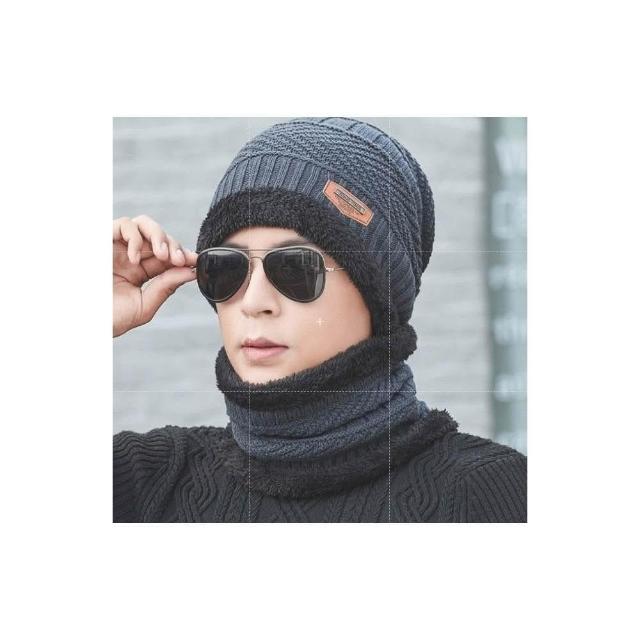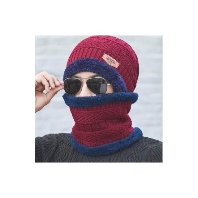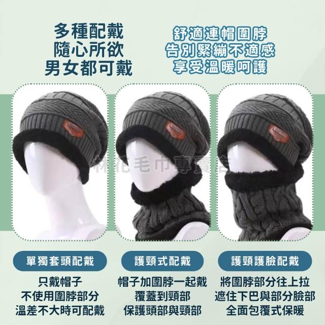 林花毛巾保暖加厚圍脖毛帽二件套組 (加厚保暖帽 男女可戴 保暖頭套 針織毛線帽 脖圍頸套 毛絨帽 毛線帽女生帽子 絨毛帽)