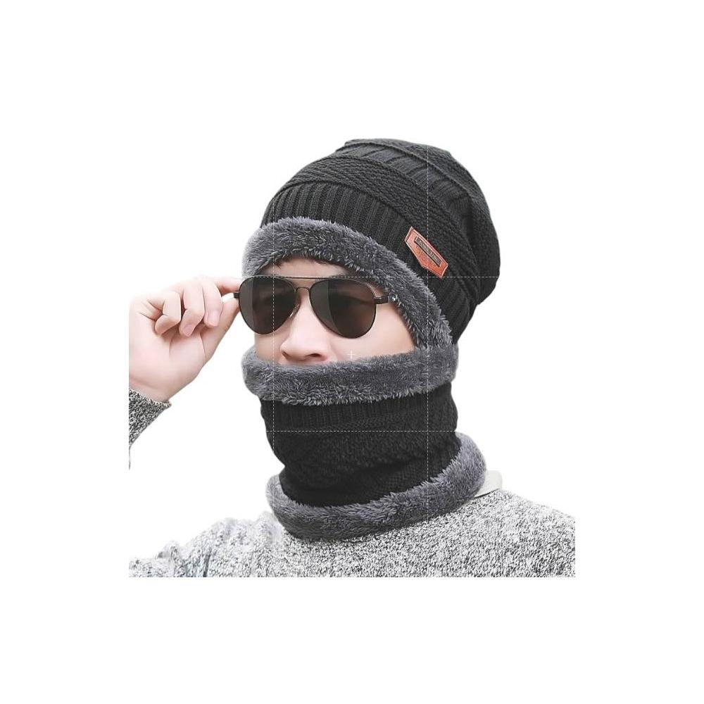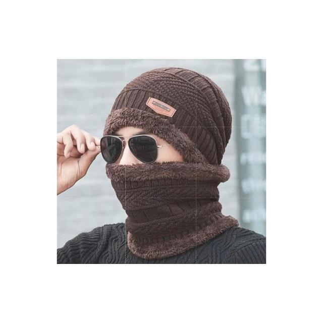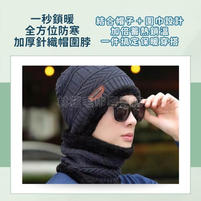 林花毛巾保暖加厚圍脖毛帽二件套組 (加厚保暖帽 男女可戴 保暖頭套 針織毛線帽 脖圍頸套 毛絨帽 毛線帽女生帽子 絨毛帽)