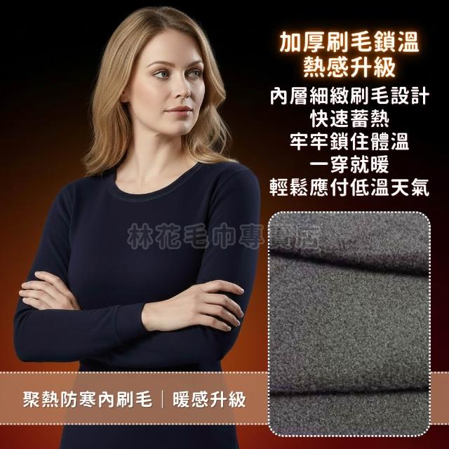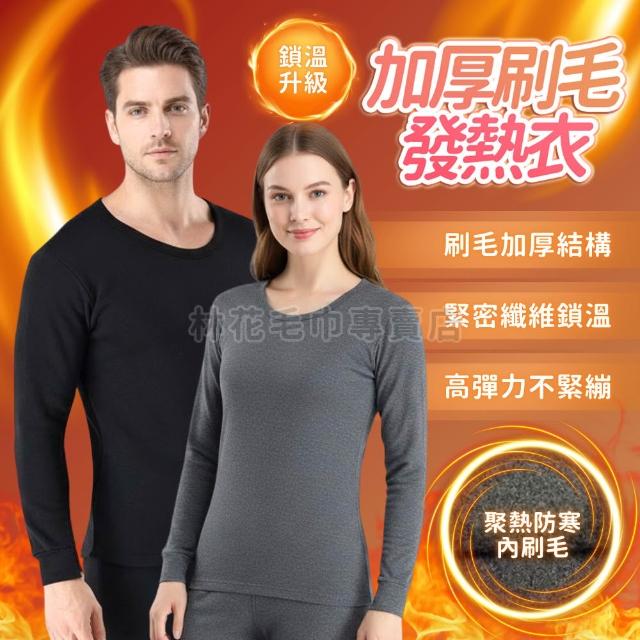 林花毛巾加厚刷毛發熱衣 保暖衣 衛生衣 男生內搭衣 女生保暖上衣 蓄熱鎖溫 防風束口袖 圓領長袖 居家服