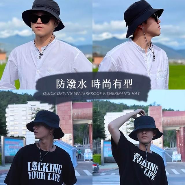 林花毛巾速乾防潑水可折疊漁夫帽(附防風繩 抗UV 多色任選 遮陽帽 登山帽 露營 戶外 男女適用)