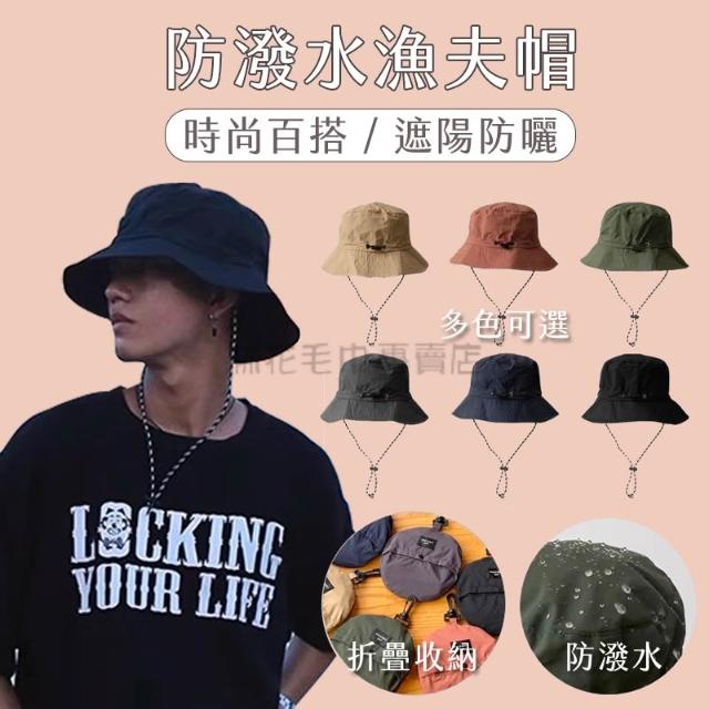 林花毛巾速乾防潑水可折疊漁夫帽(附防風繩 抗UV 多色任選 遮陽帽 登山帽 露營 戶外 男女適用)