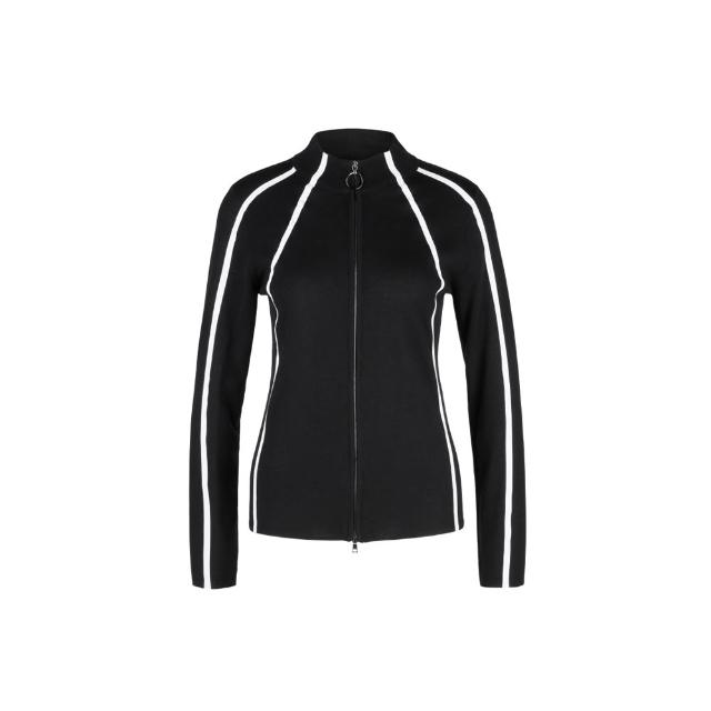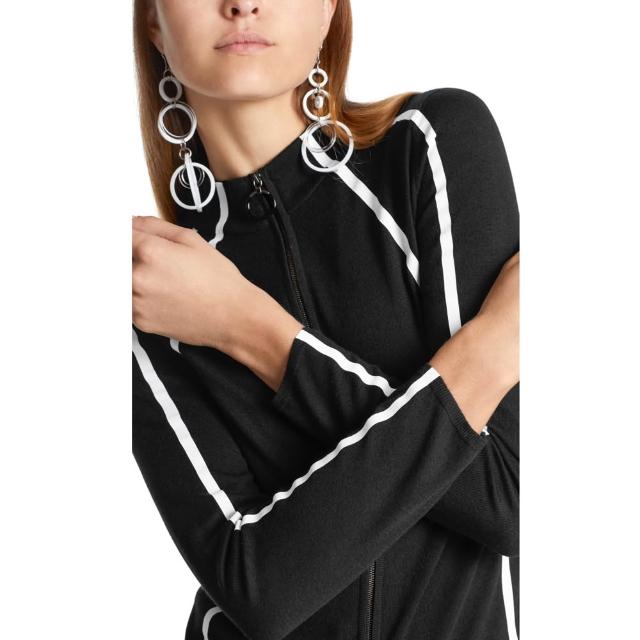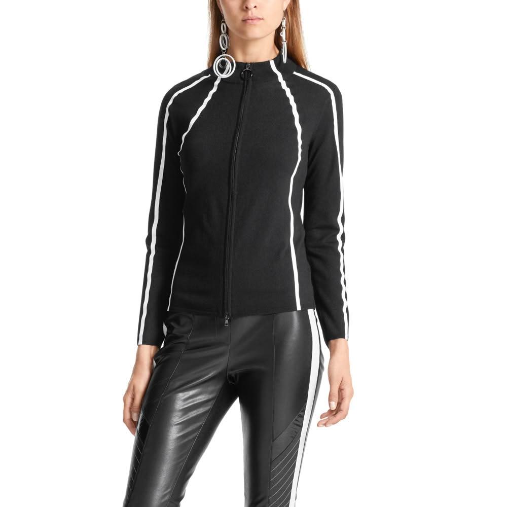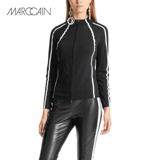 MARC CAIN瑪可凱恩時尚氣質修身立領撞色條紋短款針織外套