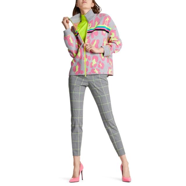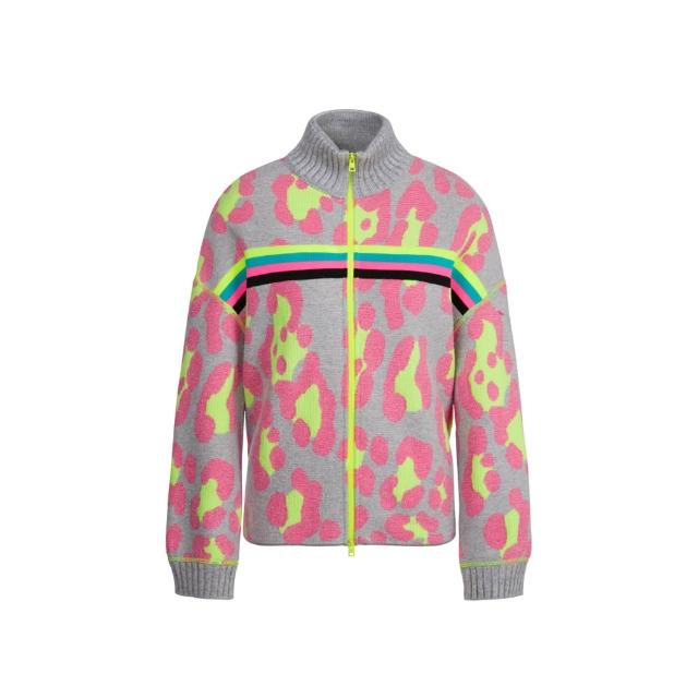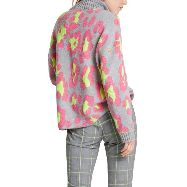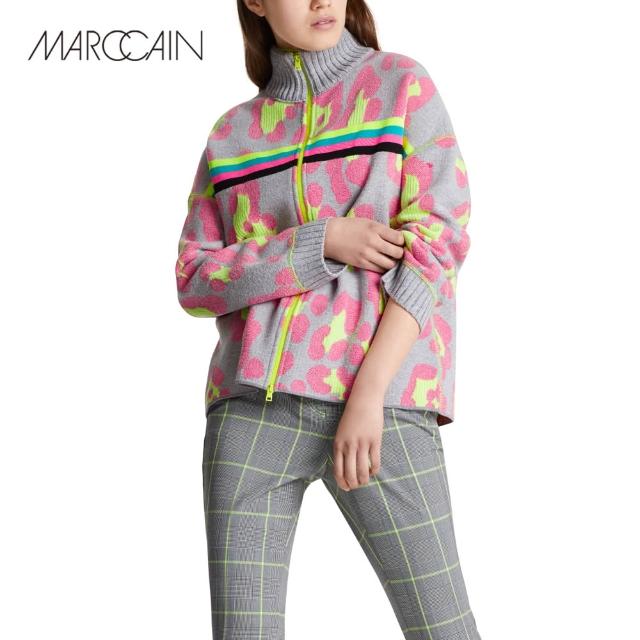 MARC CAIN瑪可凱恩彩色豹紋羊毛長袖針織外套女
