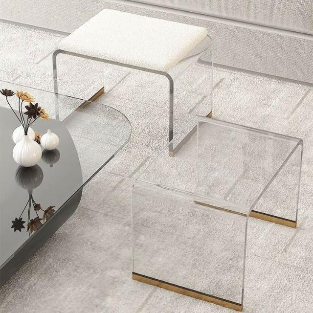 🚛透明凳子 網紅透明亞克力換鞋凳 輕奢創意家用門口小闆凳簡約客廳茶幾矮凳子🚛