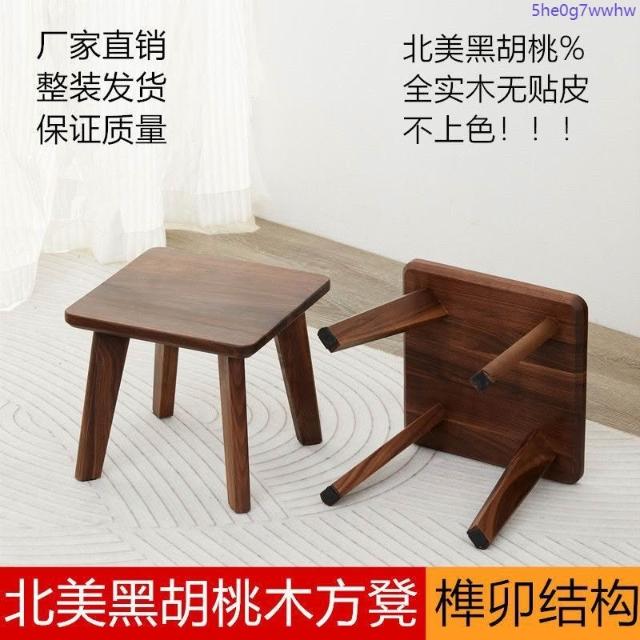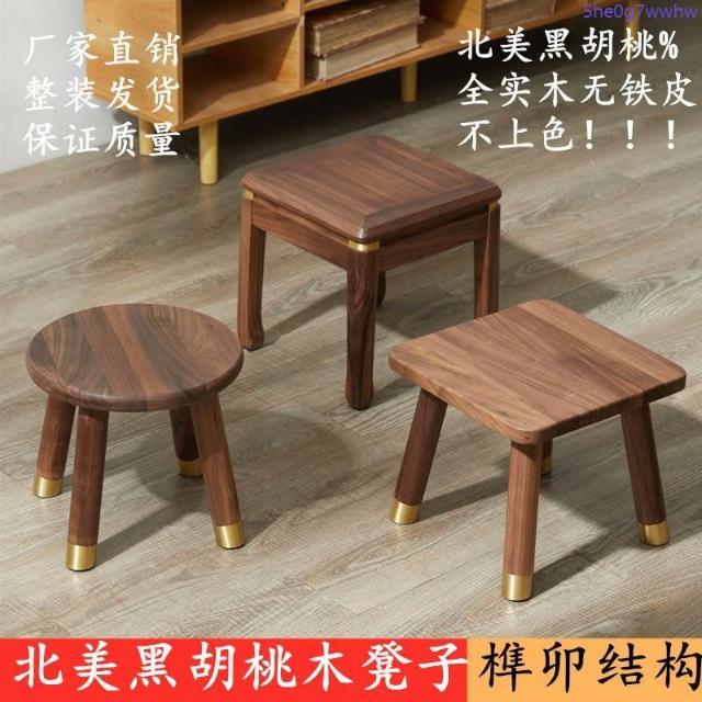 北美黑胡桃換鞋凳榫卯洗澡凳實木家用兒童戶外露營便攜方凳矮凳子