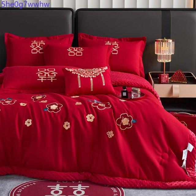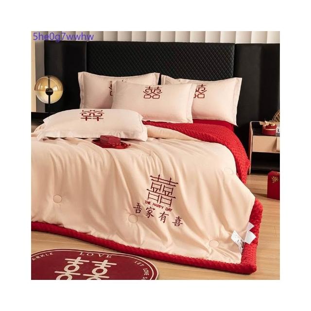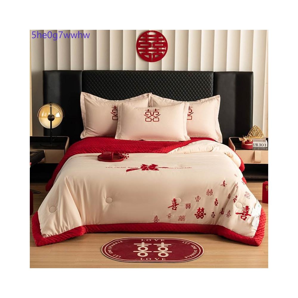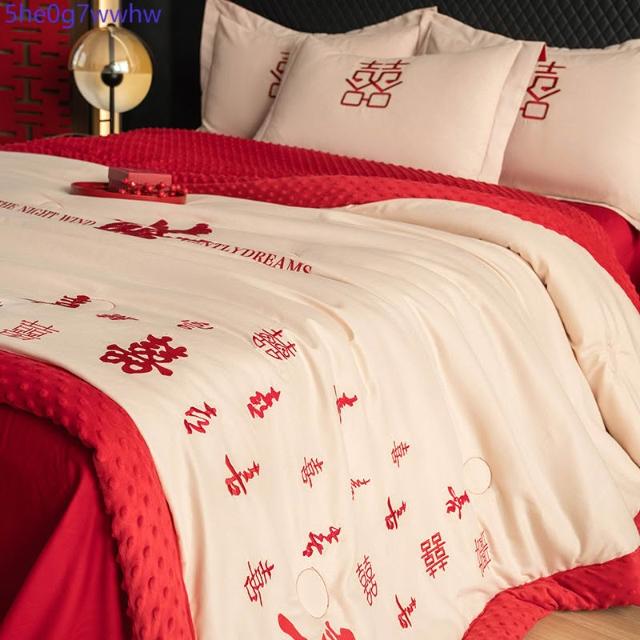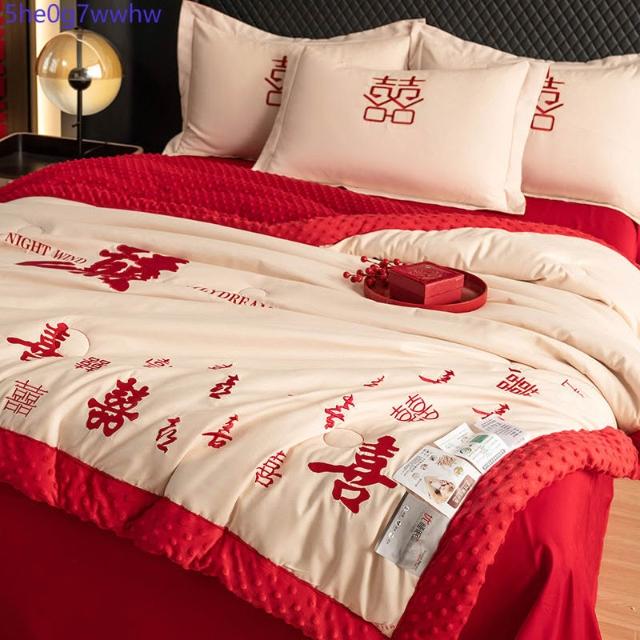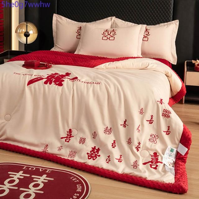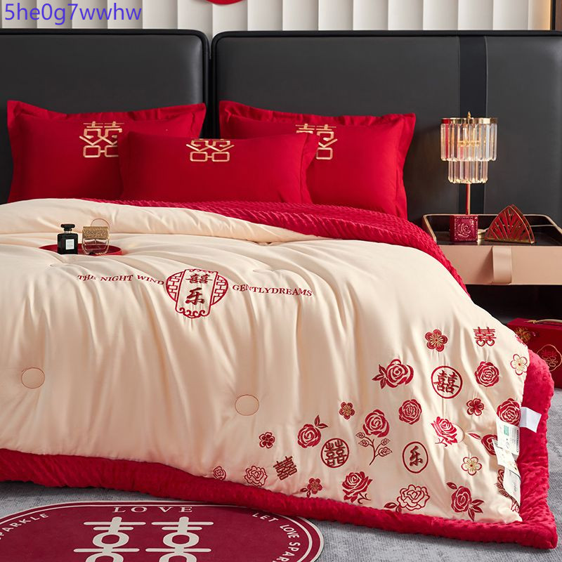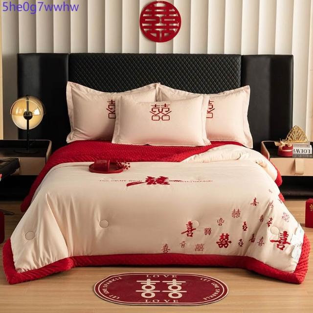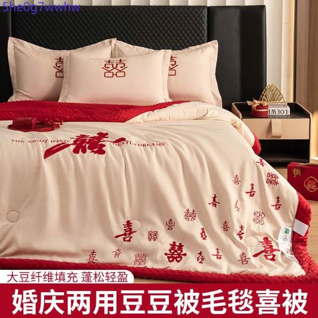 婚慶高檔大豆纖維喜被加絨保暖婚嫁大紅色豆豆絨被芯毛毯加厚冬被