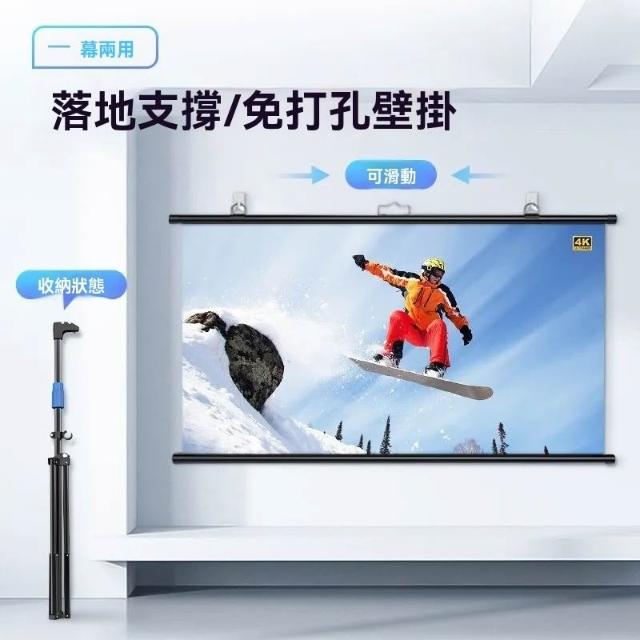 免運 便攜投影幕布 抗光投影幕布 附支架幕布 家用辦公投影幕布 4K超高清幕布 壁掛免打孔投影儀幕布白天直投幕布