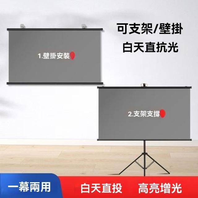免運 便攜投影幕布 抗光投影幕布 附支架幕布 家用辦公投影幕布 4K超高清幕布 壁掛免打孔投影儀幕布白天直投幕布