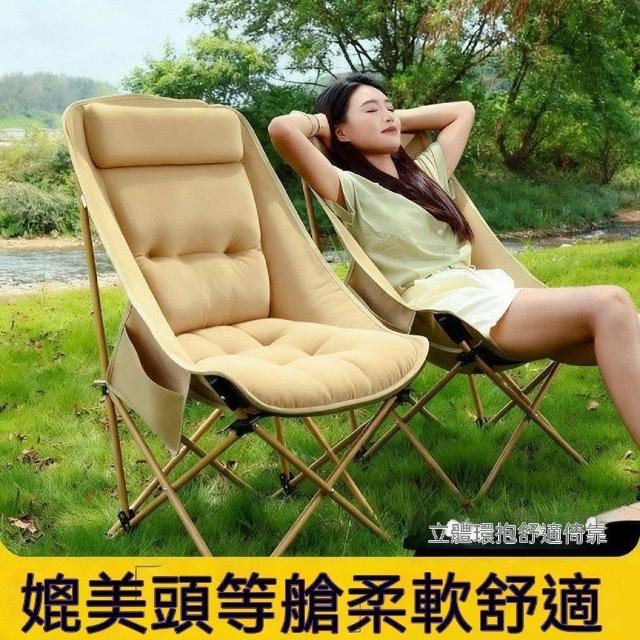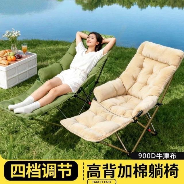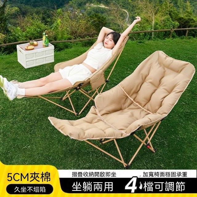 免運 900D牛津布高背躺椅 四檔腳託月亮椅 加棉調節躺椅 摺疊午休椅 休閒椅 露營躺椅 戶外躺椅