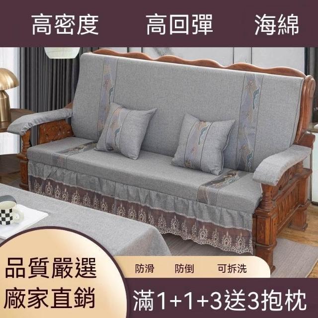 免運 實木沙發墊 帶靠背靠墊 連體老式紅木沙發墊 加厚海綿防滑坐墊 防倒椅墊