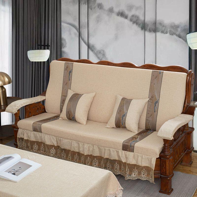 免運 實木沙發墊 帶靠背靠墊 連體老式紅木沙發墊 加厚海綿防滑坐墊 防倒椅墊