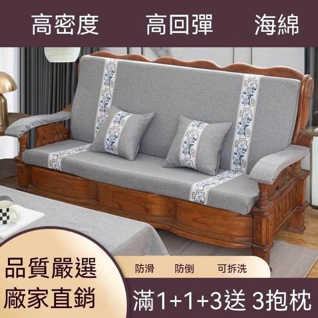 免運 實木沙發墊 帶靠背靠墊 連體老式紅木沙發墊 加厚海綿防滑坐墊 防倒椅墊