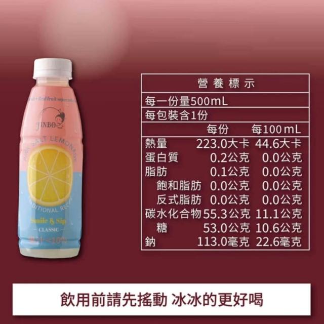 金博家粉紅鹽檸檬飲 500mlX12入/箱 添加喜馬拉雅山岩鹽 口味清爽 檸檬飲