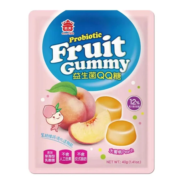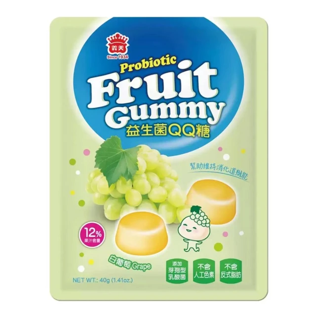 義美綜合益生菌果汁QQ糖 40公克 30入/箱 白葡萄口味 草莓口味 水蜜桃口味
