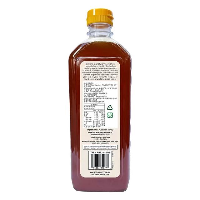 Kirkland Signature 科克蘭澳洲蜂蜜 2公斤/瓶 蜂蜜 原裝進口100%純蜂蜜 不添加人工香料及糖精