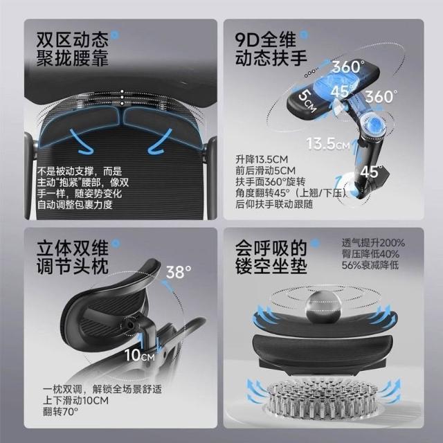 人體工學椅電腦椅雙翼懸浮腰托久坐舒適家用椅子辦公椅 4D雙懸浮動態可調腰托 龍紋特網