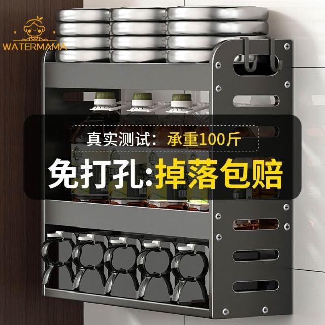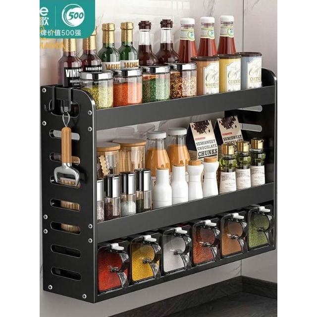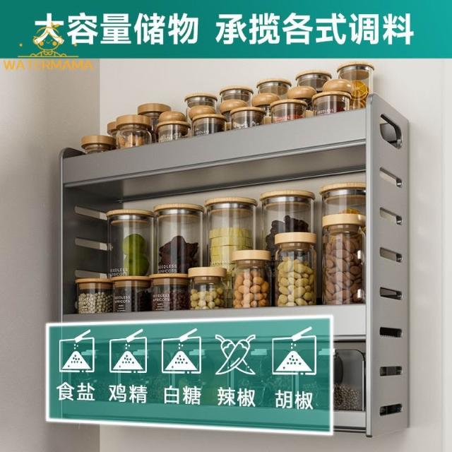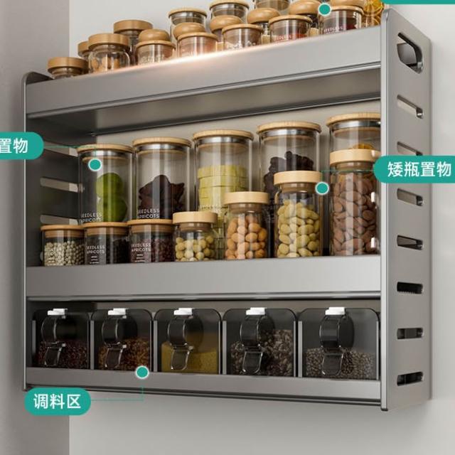 太空鋁廚房調味料置物架免打孔壁掛佐料收納架子調味收納盒