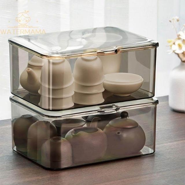 茶具收納盒防塵帶蓋透明茶幾桌面茶葉茶杯整理存放功夫茶壺置物架