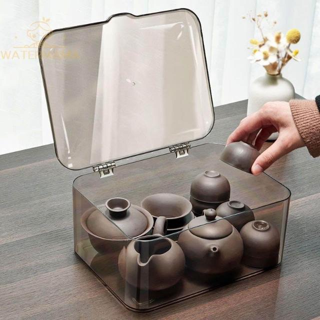 茶具收納盒防塵帶蓋透明茶幾桌面茶葉茶杯整理存放功夫茶壺置物架
