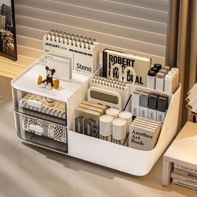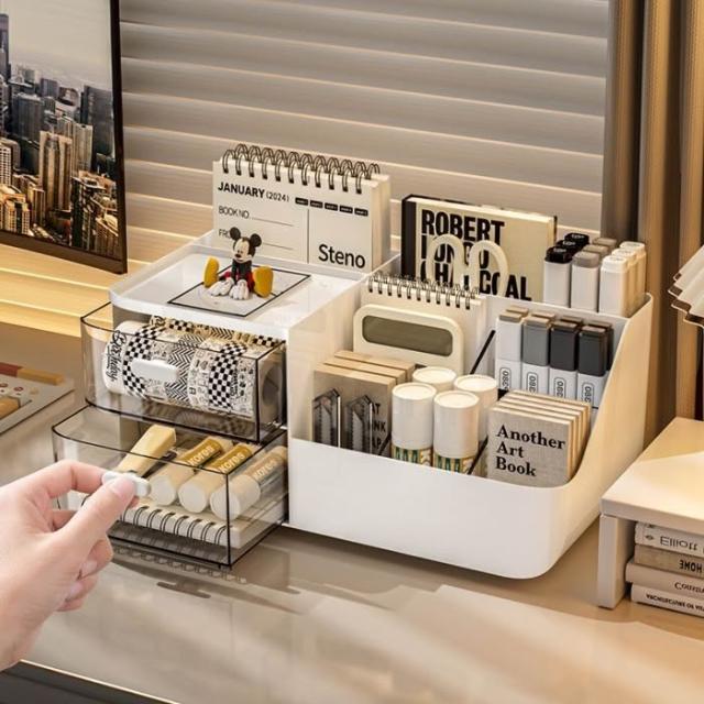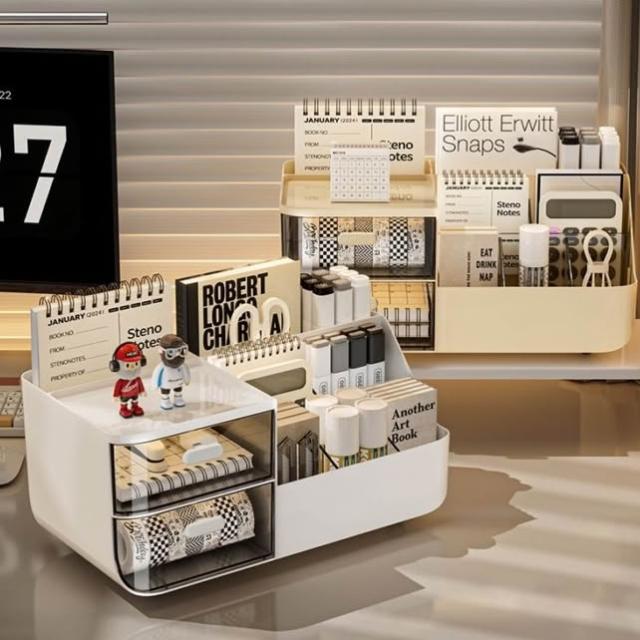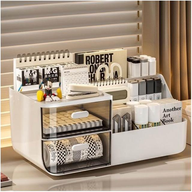 貨到付款桌面收纳盒办公室工位抽屉式分隔盒宿舍桌上学生大容量文具收纳盒桌面整理盒 書桌收納 桌面抽屜式收納盒文具收纳盒